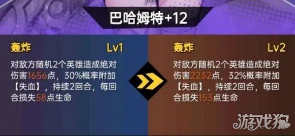 技能效果30%概率附加【失血】效果,持续两回合(随着提升等级伤害、概率和锁定目标数量会增加,并产生额外伤害BUFF)。