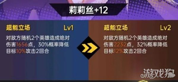 技能效果30%概率随机选取两个目标降低10%攻击力,持续两回合((随着提升等级伤害、概率和锁定目标数量会增加,并产生额外伤害BUFF)。