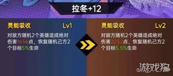 技能效果随机恢复己方两个目标5%生命值(随着提升等级伤害、概率和锁定目标数量会增加,并产生额外伤害BUFF)。