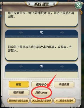 3、出现系统设置页面,点击下方的【兑换CDkey】